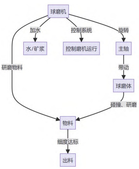 球磨機是利用旋轉(zhuǎn)的磨筒將物料研磨成細粉。工作時,磨筒內(nèi)裝滿研磨體(如鋼球、鋼棒、石英砂等),磨筒圍繞其水平軸線旋轉(zhuǎn),物料和研磨介質(zhì)在重力、離心力和摩擦力的作用下產(chǎn)生復雜動態(tài)。物料從進料端送入,隨著磨筒的旋轉(zhuǎn)和研磨介質(zhì)的拋落運動,物料被研磨和碾壓,達到粉碎的目的。