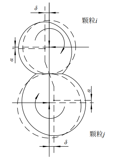 (3)相鄰顆粒間在接觸處存在一定的重疊量,該重疊量要遠遠小于顆粒單元的粒徑;