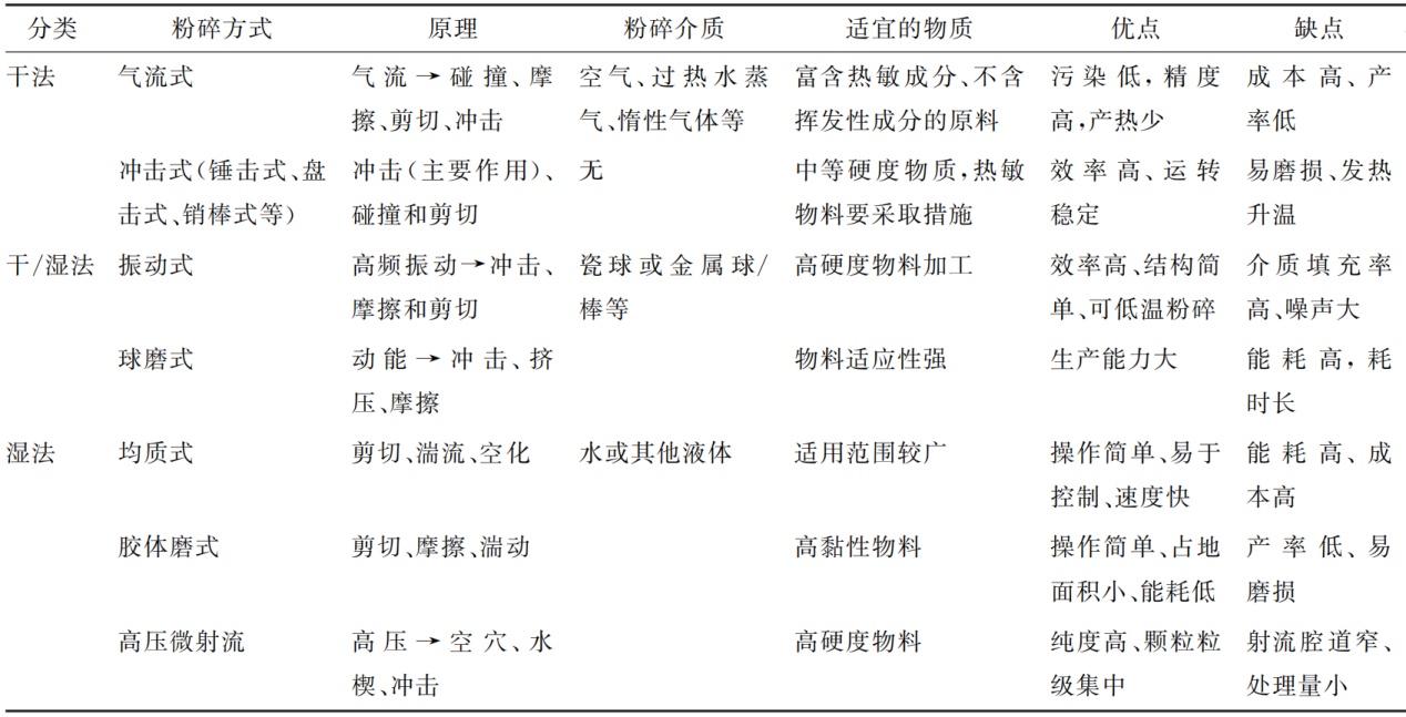 基于中藥材的固有屬性,中藥超微粉多采用外加機械力的方式制備。常見的機械設備有三種。