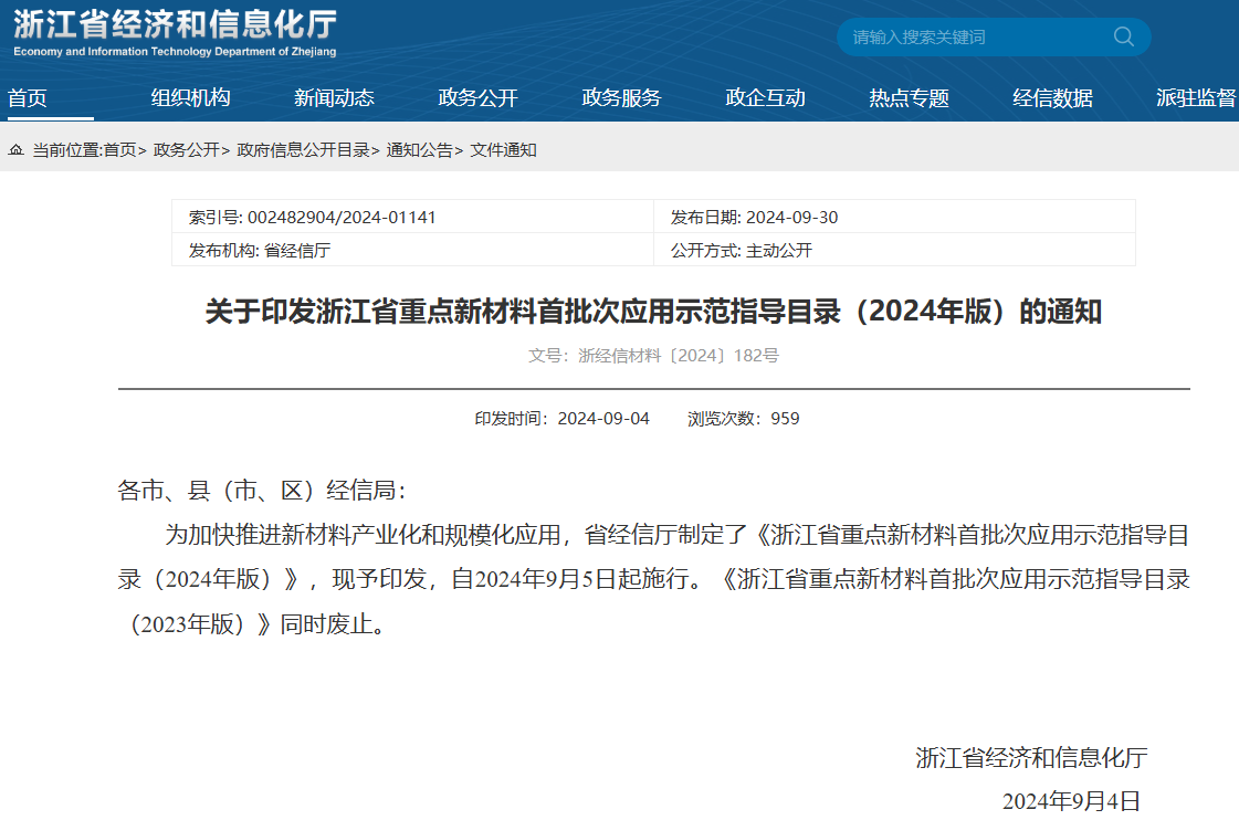 中國粉體網(wǎng)訊 近期,浙江省經(jīng)濟(jì)和信息化廳公開了《浙江省重點(diǎn)新材料首批次應(yīng)用示范指導(dǎo)目錄(2024年版)》,分為先進(jìn)基礎(chǔ)材料、關(guān)鍵戰(zhàn)略材料、前沿新材料三大類共計(jì)329種重點(diǎn)新材料。