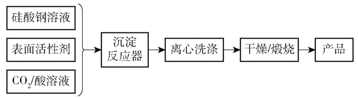 化學(xué)沉淀法是合成石英粉體較為廣泛的方法之一。沉淀法生產(chǎn)SiO2的原理:采用硅酸鈉與二氧化碳或酸溶液(加鹽酸、硫酸或硝酸)作為原料,在一定的合成溫度和表面活性劑的作用下混合反應(yīng),得到偏硅酸沉淀,再經(jīng)過濾、洗滌、干燥、煅燒工序制備出SiO2。
