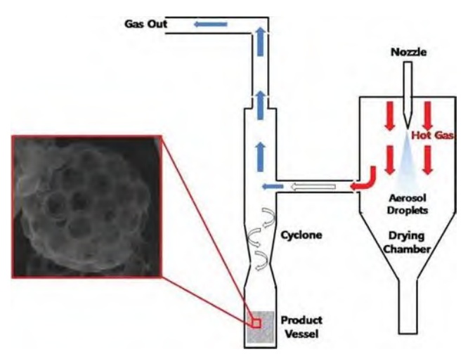 首先,通過預成型制備二氧化硅膠體,將分散體的液滴在高溫下快速蒸發,由于流體動力學的不穩定性,導致形成中空微粒。通過調節干燥溫度,能夠實現內部尺寸和外部形態的控制。此外,二氧化硅膠體的分散體可以與苯乙烯納米球組裝成異質膠體,經過噴霧干燥、煅燒去除苯乙烯,進而獲得大孔的空心顆粒。然而,這種方法得到的二氧化硅殼結構并不是真正的連續殼。