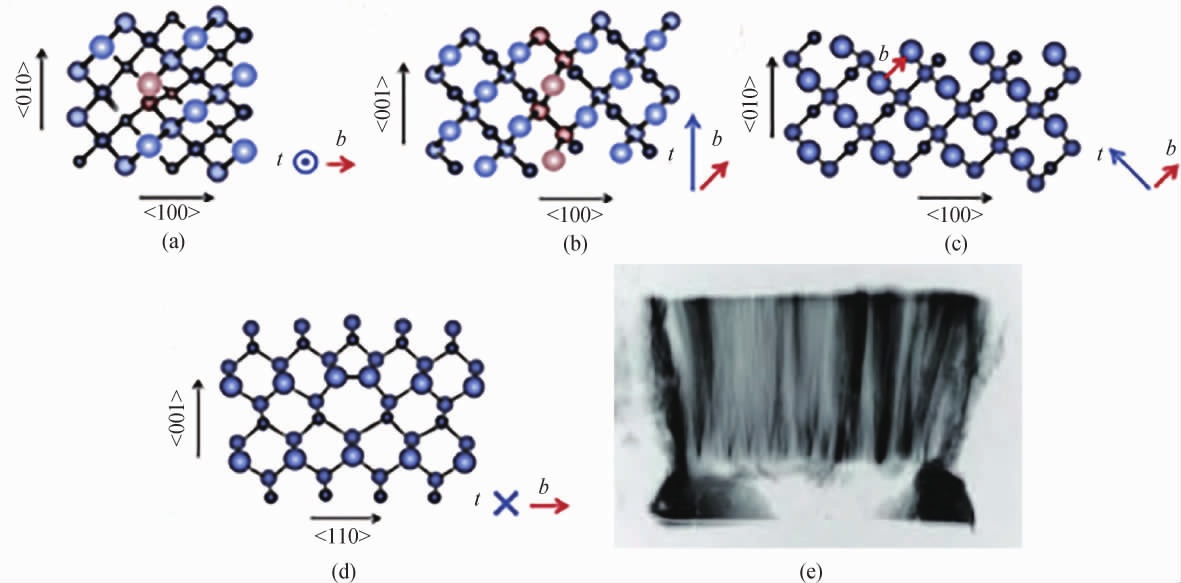 ( a,b) 45°混合位錯(cuò)的原子模型; ( c,d) 刃型位錯(cuò)的原子模型;