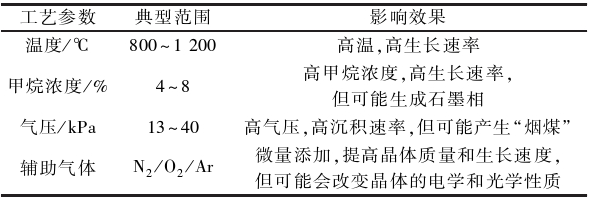 生長工藝的控制。生長工藝的穩(wěn)定性與可靠性是連續(xù)沉積大面積、高質(zhì)量單晶金剛石的保障。在外延生長過程中,沉積溫度、甲烷濃度、氣體壓力是控制生長的關(guān)鍵參數(shù)。這些參數(shù)對(duì)等離子體狀態(tài),活性基團(tuán)離解、激活、分布等都有顯著影響,進(jìn)而影響表面一系列的物理化學(xué)反應(yīng)。
