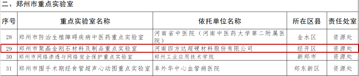 中國(guó)粉體網(wǎng)訊 近日,鄭州市科學(xué)技術(shù)局發(fā)布《2024年度鄭州市工程技術(shù)研究中心和重點(diǎn)實(shí)驗(yàn)室擬組建名單公示》,河南四方達(dá)超硬材料股份有限公司申請(qǐng)的鄭州市聚晶金剛石材料及制品重點(diǎn)實(shí)驗(yàn)室正式獲批,成為鄭州市重點(diǎn)實(shí)驗(yàn)室的一員。