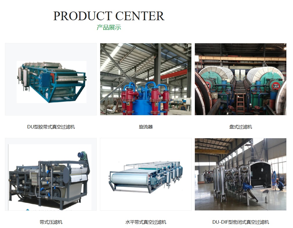 公司主要產品有DI系列連續水平帶式真空過濾機,DU系列橡膠帶式真空過濾機,DY帶式壓榨機,系列盤式真空過濾機以及旋流器等,產品廣泛用于化工、礦冶、煤炭、食品、農藥、染料、制堿、電力、化肥、醫藥、發酵、稀土、無機鹽、造紙、環保、污水處理等幾十個行業,暢銷國內十個省市和孟加拉、南非、印度、俄羅斯、伊朗、馬來西亞等國,是廣大過濾機用戶理想的選擇。