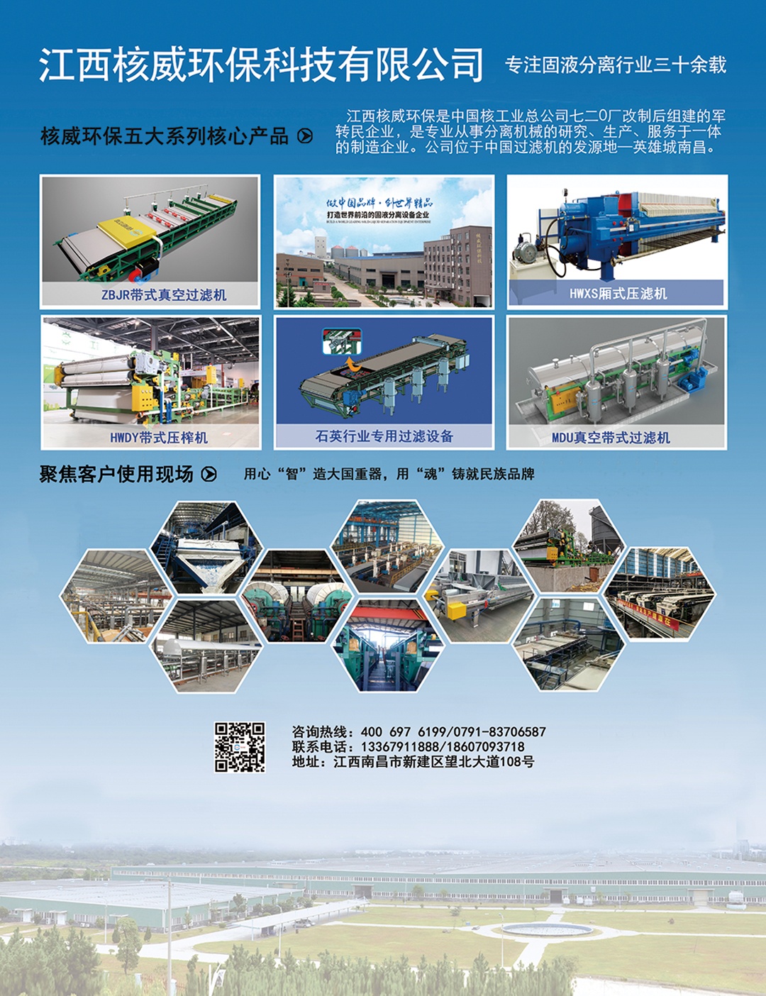 江西核威環保科技有限公司是一家專業從事分離機械的研究開發、設計制造、銷售服務于一體的企業;公司位于中國過濾機發源地—英雄城南昌。作為經驗豐富的固液分離設備生產企業,具有專業的產品研發團隊,擁有分離機械制造經驗的工程師,技術力量雄厚,公司匯聚了從事分離機械制造的專業人才。在產品設計上吸取了國內外的先進技術,生產的固液分離設備,具有過濾速度快,性能穩定,操作方便,自動化程度高,防腐及密封性能好。