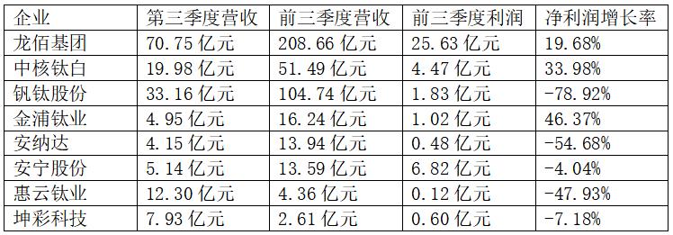 鈦白粉企業(yè)2024年前三季度經營數據(部分企業(yè)含非鈦白粉經營數據)