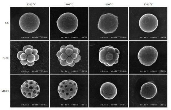 不同溫度下二氧化硅顆粒的掃描顯微照片