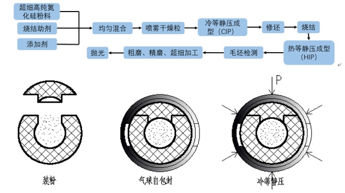 氮化硅陶瓷(Si3N4)是機械物理綜合性能較優的陶瓷材料,具有低密度、高彈模、高硬度、高強度、低熱膨脹系數、耐高溫、耐磨損、耐腐蝕以及絕緣性優良等特性。使用該材料制備的氮化硅陶瓷球組裝的軸承目前已被廣泛應用于各種高精度高轉速機床、地鐵、航天發動機和石油化工機械等領域。