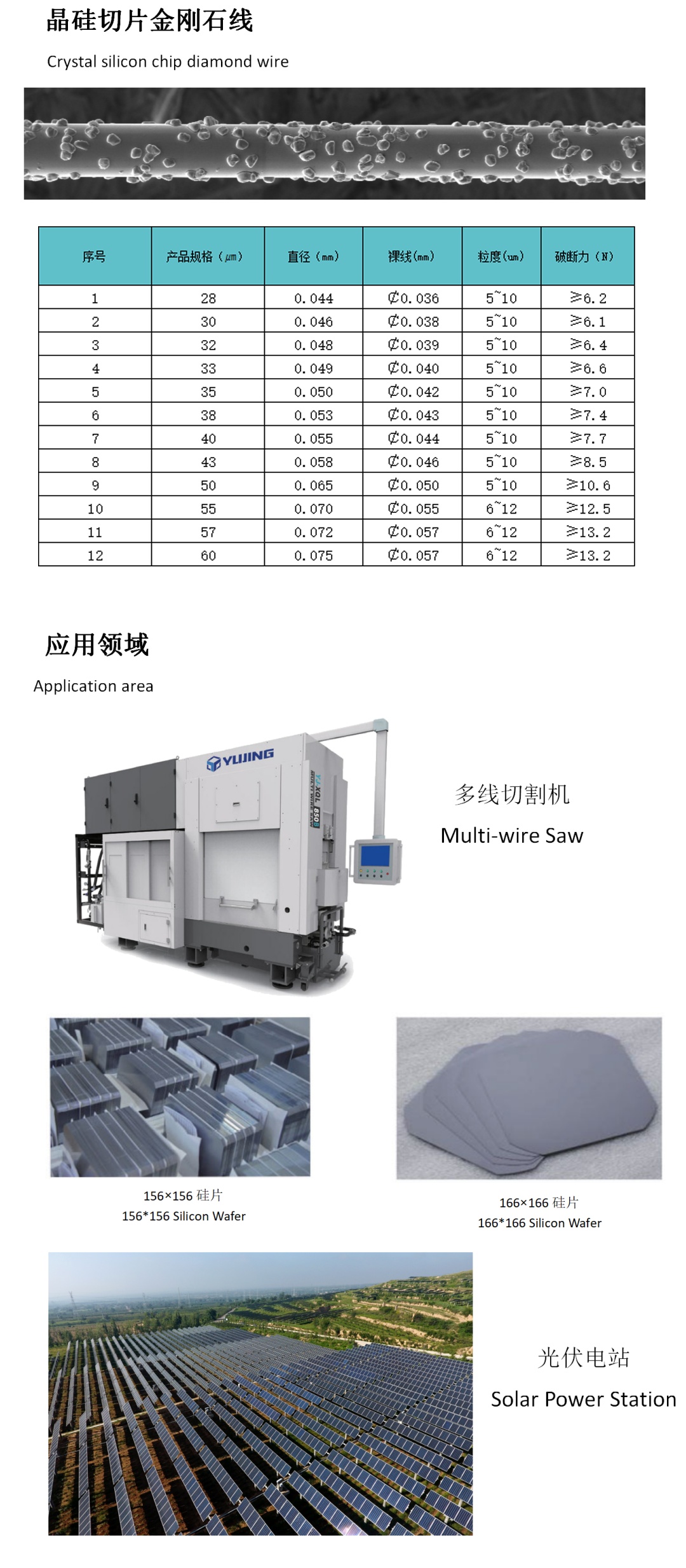 光伏領(lǐng)域:是金剛石線的主要應(yīng)用領(lǐng)域之一,用于多晶硅切片、單晶硅、晶棒等的切割,對推動光伏產(chǎn)業(yè)的發(fā)展起到了重要作用。隨著光伏行業(yè)的不斷發(fā)展,硅片朝著“大尺寸+薄片化”的趨勢發(fā)展,這對金剛石線的綜合性能及切割應(yīng)用提出了更高要求,如需要更細(xì)的金剛石線、更快的切割速度、更低的軸間距、更精準(zhǔn)的張力控制等,以減少硅料切割損耗,提高硅片良品產(chǎn)出率,降低硅片生產(chǎn)綜合成本。