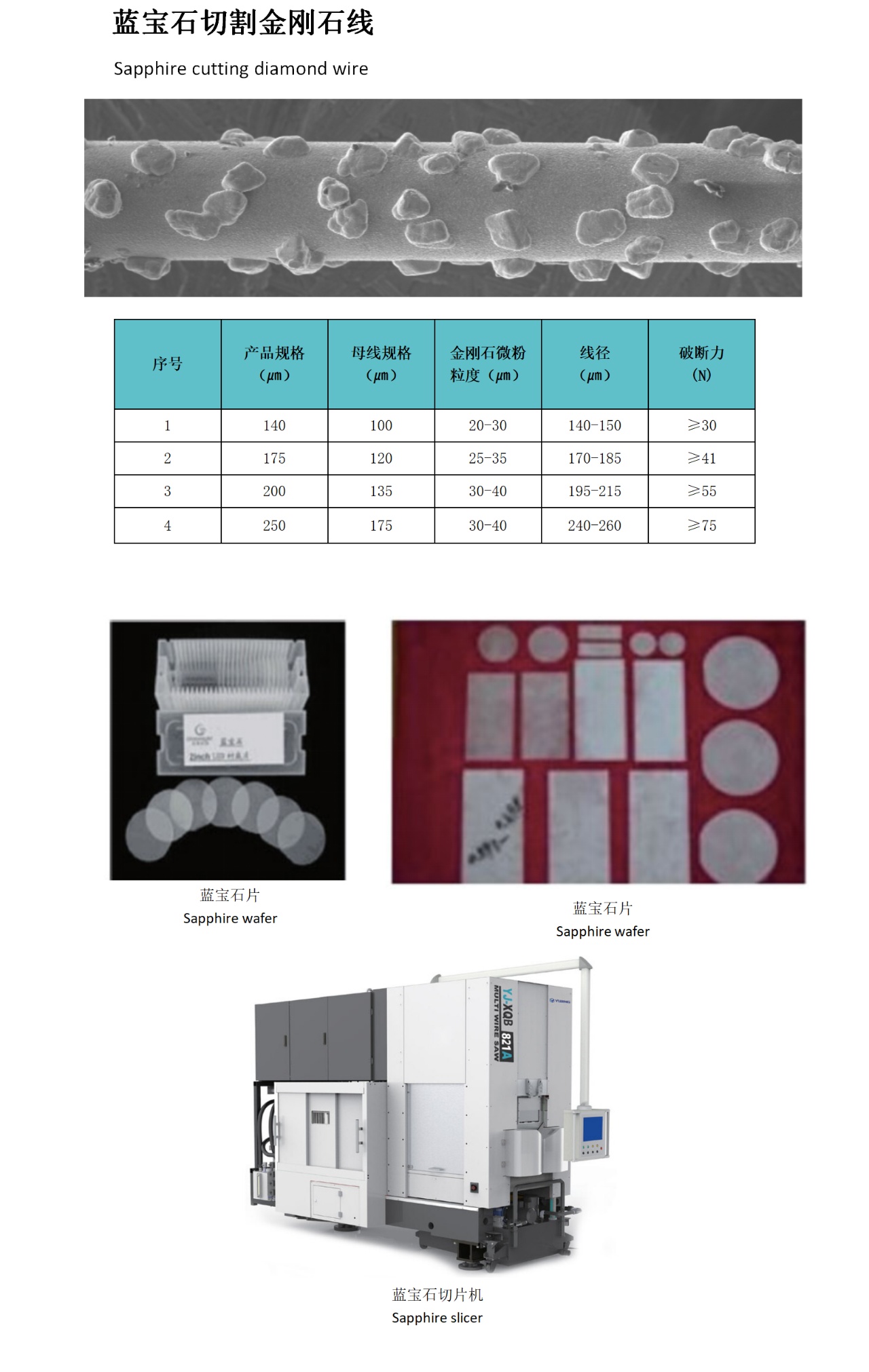 藍(lán)寶石切割:藍(lán)寶石具有硬度高、耐磨性好、透光性強(qiáng)等優(yōu)良特性,在光學(xué)領(lǐng)域應(yīng)用廣泛,如用于制造光學(xué)鏡片、手表表鏡等。金剛石線能夠有效地對藍(lán)寶石進(jìn)行切割,滿足其在光學(xué)領(lǐng)域的高精度加工需求,保證切割面的平整度和光潔度,從而提高光學(xué)元件的性能。