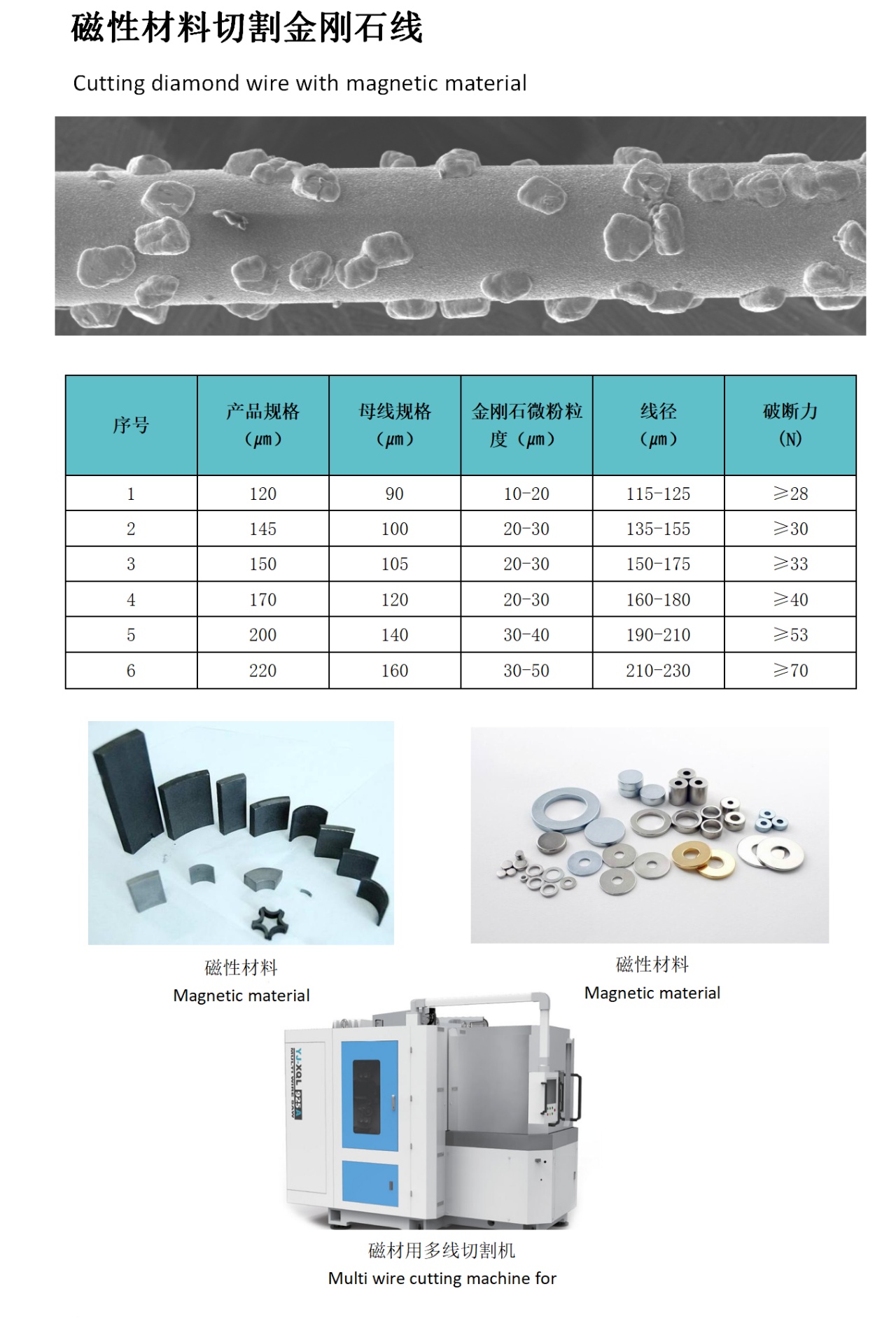 磁性材料切割:磁性材料中的釹鐵硼具有高磁能積、高矯頑力等優(yōu)點,在電子、電氣、汽車等領(lǐng)域應(yīng)用廣泛。金剛石線可用于切割釹鐵硼等磁性材料,使其能夠加工成各種形狀和尺寸的磁體。