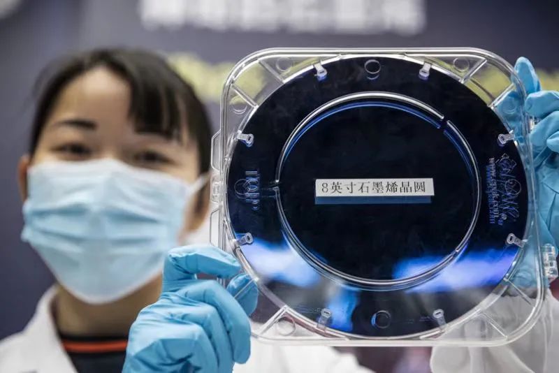 入職后,于慶凱教授迅速組建精英團隊,全力攻克高質(zhì)量石墨烯生長及產(chǎn)業(yè)化難題。功夫不負有心人,2020年,上海微系統(tǒng)所在寶山成功實現(xiàn)8英寸石墨烯晶圓小批量生產(chǎn),并將產(chǎn)品推向國內(nèi)外市場,引起了業(yè)界的廣泛關(guān)注與強烈反響。當時那枚如鏡面般光亮的圓盤形象深深印刻在關(guān)注前沿新材料發(fā)展人士的心中,成為了石墨烯產(chǎn)業(yè)化進程中的標志性成果。