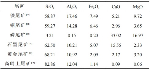 典型尾礦的主要組分及其質(zhì)量分數(shù)%