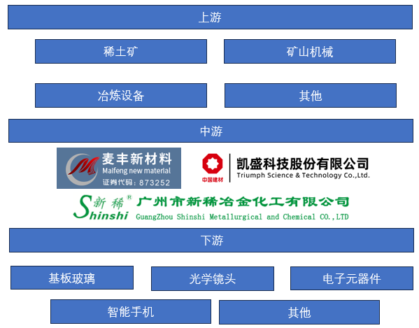 稀土拋光粉行業產業鏈上游原材料為稀土,目前我國稀土拋光材料的市場份額占拋光材料市場 85%以上,近些年,為保護和合理開發優勢礦產資源,相關部門多次對部分礦種進行保護性和限制性開發,稀土礦、鎢礦等都曾是我國特定礦種,實行開采總量控制,由于資源的有限性,我國稀土拋光粉行業面臨較大的上游行業風險。稀土拋光粉行業下游主要是光學玻璃、蓋板玻璃、電子元器件、智能手機等行業。