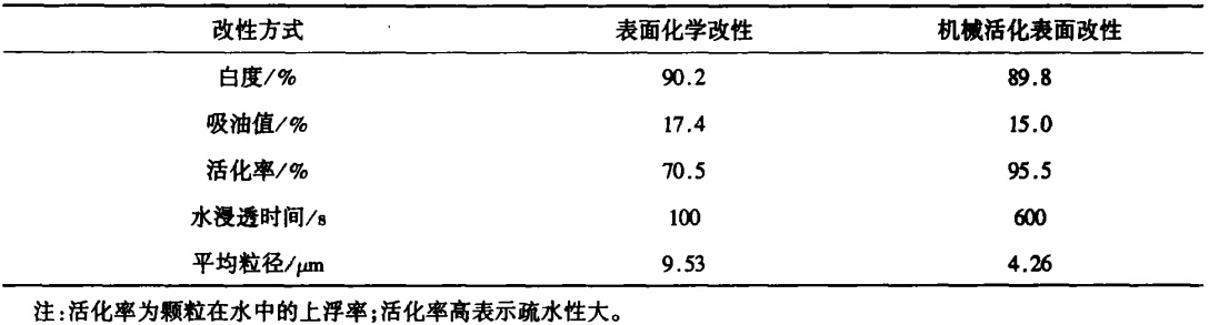 機械力化學改性法是指通過粉碎、磨碎、摩擦等強烈的機械力作用下使無機填料表面得到激活,填料顆粒晶格結構發生變化,從而使無機填料與有機基體之間的反應活性得到增強以達到改性的目的。Ilker等人采用油酸鈉作為改性劑,使用攪拌球磨機對方解石進行機械化學改性。隨著油酸鈉用量的增加,粉狀方解石的疏水性增強,在油酸鈉用量為5.0kg/ton和7.5kg/ton時,活性比分別為99.0%和100.0%。因此,濕攪拌球磨法可使方解石礦物的親水表面容易有效地轉化為疏水表面。