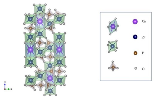 NZP族材料熱膨脹系數(shù)較低,其母體是NaZr2(PO4)3 ,化學(xué)通式是MIMIIA2(BO4)3。其中M位、A位、B位都具有豐富的離子取代性,理論上可以利用不同的取代設(shè)計(jì)出一系列可調(diào)熱膨脹系數(shù)的材料。其中MI位通常是堿金屬或者堿土金屬元素;MII位在有離子占位的情況下通常是堿金屬離子;A 位可以是 Zr、Ti、Sn 等四價(jià)六配位的離子;B位主要是P、Si等五價(jià)四配位的離子。CZP陶瓷材料正是M位為Ca的一種NZP族材料。