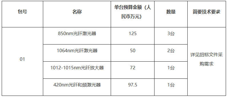 項目名稱:清華大學光纖激光器與放大器采購項目