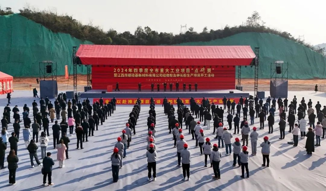 中國粉體網(wǎng)訊 近日,江西吉安市2024年四季度全市重大工業(yè)項目建設(shè)和招大引強“點將賽”活動在遂川縣舉行,共有傳順硅基新材料等51個重大工業(yè)項目開工,總投資372.1億元。