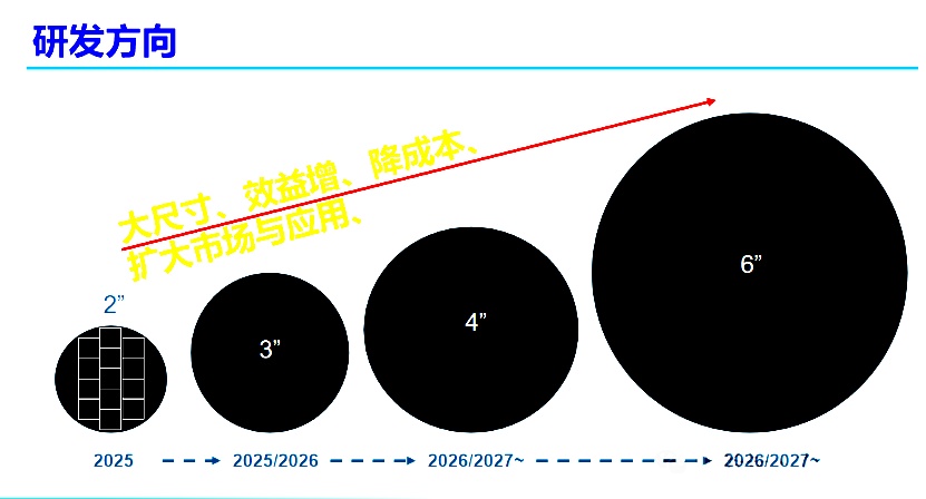 金剛石作為功能材料,因其卓越的導熱性能和多種優異特性,是高功率半導體散熱的最理想材料。公司重點圍繞“散熱+導熱”展開攻關,面對未來市場,向“大尺寸、增效益、降成本”等方向發展,不斷擴大市場與應用。