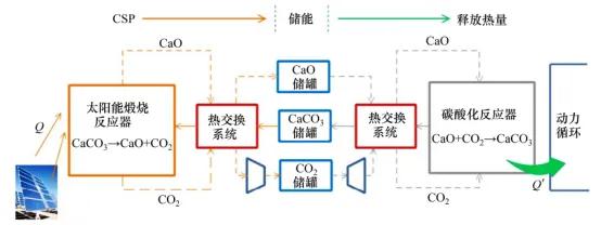 CaO、CaCO3儲(chǔ)能與CSP發(fā)電的集成系統(tǒng)