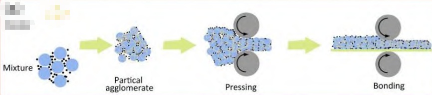 干壓法將電極材料(如鎳鈷錳酸鋰)、導(dǎo)電添加劑(如多壁碳納米管)和干燥的PVDF粉體等進(jìn)行預(yù)混合,然后將混合物壓覆在腐蝕鋁箔上,再通過輥壓進(jìn)一步熱壓制備出干法電極。與傳統(tǒng)濕法涂覆工藝相比,這種方法制備的電極具有更高的機(jī)械強(qiáng)度和性能,并且能夠?qū)崿F(xiàn)高負(fù)載量。