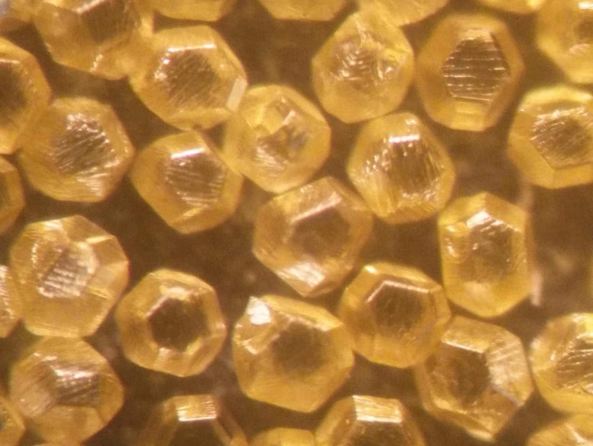 人造金剛石(35-40HWD92)產品表面的狀態是可控,其表面呈現的波紋狀溝壑,大大的增加了金剛石與金屬基體的結合力,提高了金剛石的使用壽命;比普通的金剛石平均熱沖擊韌性(TTI)值提高了2.97個百分點;磁化率降低了約63%;產量提高10%,能耗降低了3%,電解時間縮短了20%,減少了酸堿與電力消耗,生產過程安全環保節能。產品的純度、透度、強度、晶型等品質優良,把持力、鋒利度和磨削速度大大的提高。