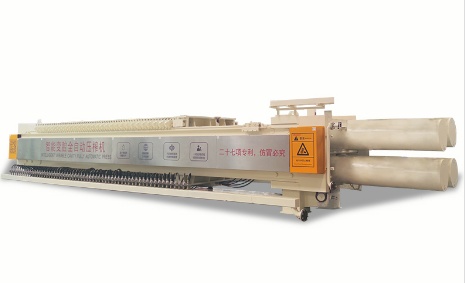 特高壓壓榨機(jī)主要由機(jī)架、鋼制濾框、鋼制濾板、濾布、液壓閉合系統(tǒng)、液壓彈性擠壓系統(tǒng)、自動拉板裝置、自動接液翻板裝置、自動卸餅清洗系統(tǒng)、中心吹泥系統(tǒng)、智能控制系統(tǒng)等組成。