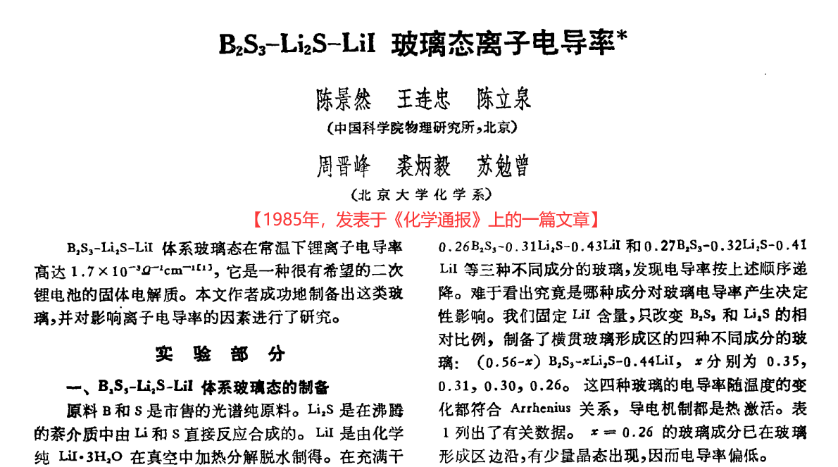 然而,在硫化物全固態電池和鋰硫電池成為研究熱點之前,硫化鋰在很長一段時間里幾乎沒有任何實際的應用,研究它的人也極為稀少。中國粉體網小編查閱資料發現,在整個20世紀里,僅有幾篇關于Li2S在電池領域應用的中文文獻。其中最早的一篇是1985年中科院物理所陳立泉院士等和北京大學幾位研究人員的研究報道。過了差不多30年,也就是在2015年前后,硫化鋰的研究熱度才逐漸升溫。時至今日,硫化鋰儼然成為了全固態電池和鋰硫電池材料界的“明星”。