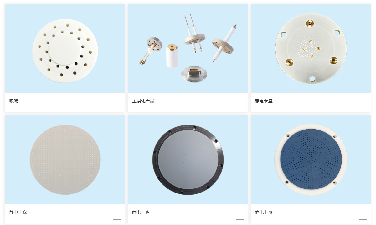 目前,靜電吸盤廣泛應用于集成電路制造工藝中,特別是刻蝕、PVD、CVD等核心工藝中,這其中的各個工序均需要保證晶圓的平穩固定,都需要靜電卡盤進行夾持。陶瓷加熱器應用于半導體薄膜沉積設備(CVD、PECVD、ALD)、激光退火設備的工藝腔室內,與晶圓直接接觸,承載并使晶圓獲得穩定、均勻的工藝溫度及成膜條件。