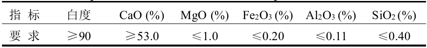 在實際應用中,不僅對原料礦石的CaO含量要求,還要求其白度、MgO、Fe2O3、Al2O3、SiO2含量等理化指標。