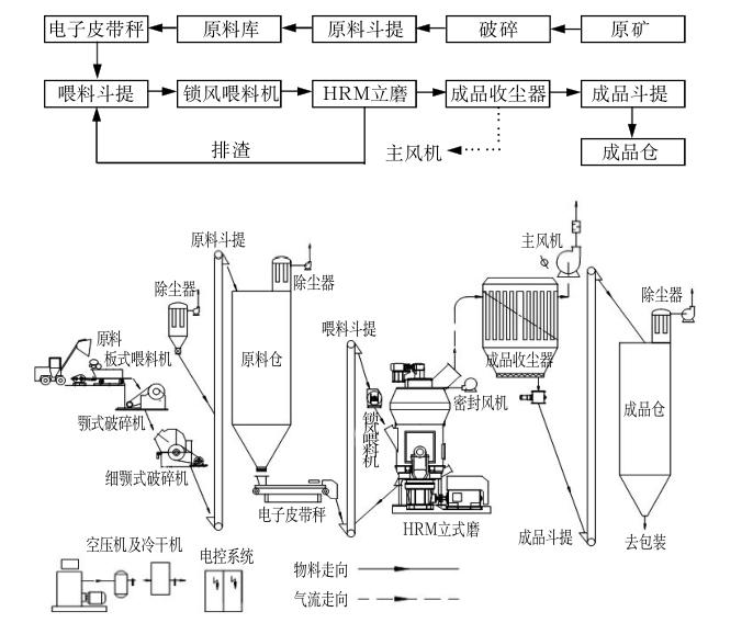 目前立式磨或立式磨+二次分級、三次分級工藝是重鈣精細化加工主流技術之一,該工藝主要適宜于600~2500目重鈣粉體的規(guī)模化生產。