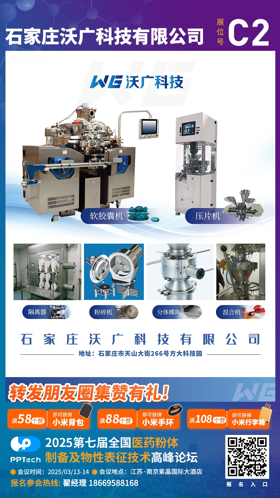 從第七屆全國醫藥粉體制備及物性表征技術高峰論壇組委會獲悉,本屆會議將于2025年3月13-14日在南京舉辦。石家莊沃廣科技有限公司作為參展單位邀請您共同出席。