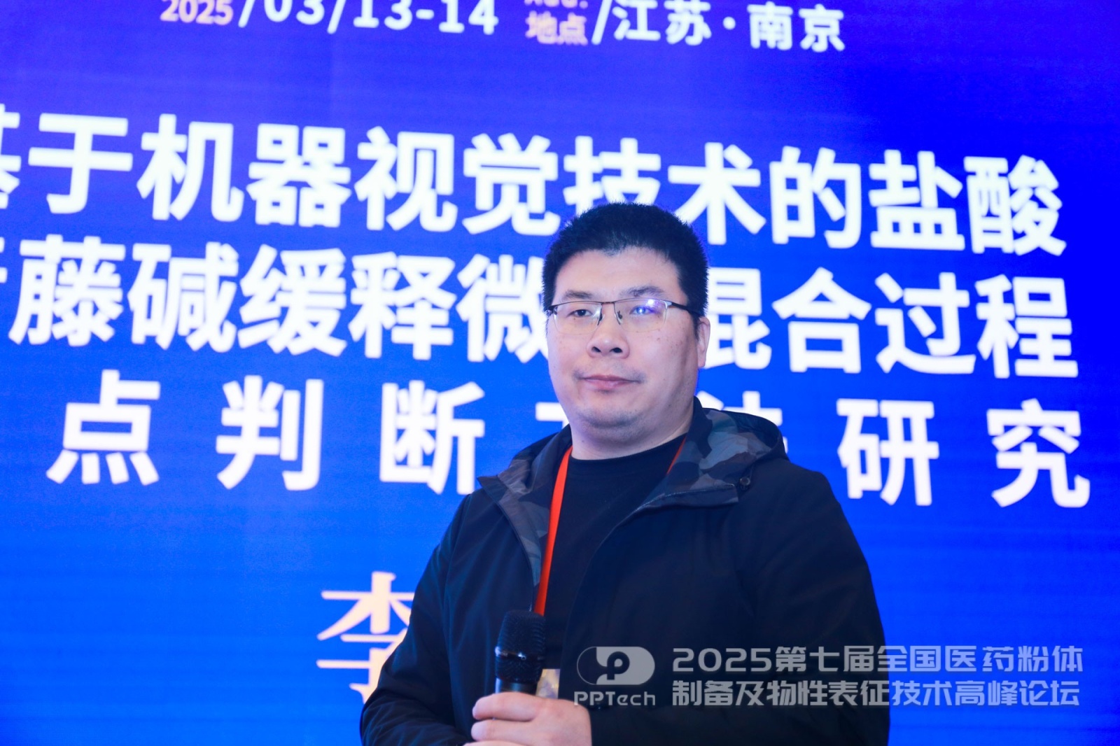 天津中醫藥大學李文龍研究員作《基于機器視覺技術的鹽酸青藤堿緩釋微丸混合過程終點判斷方法研究》報告
