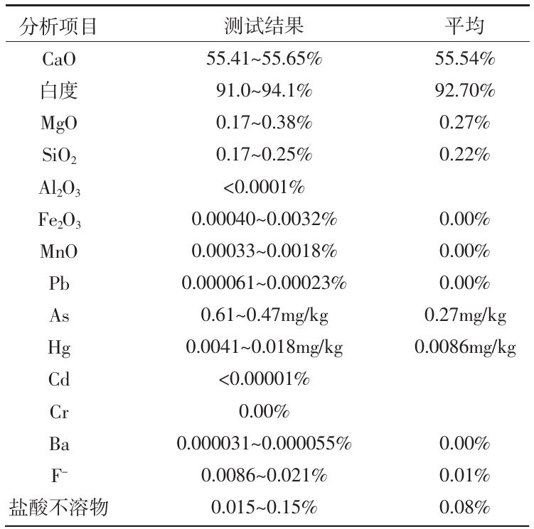 南丹縣某方解石礦組合分析樣測試結果統計表