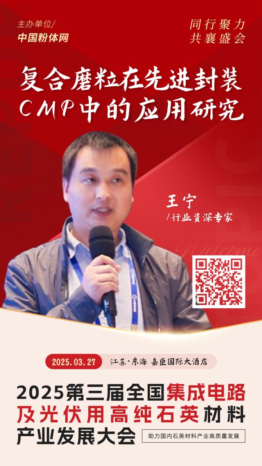 2025年3月27日,由中國粉體網主辦的“2025第三屆集成電路及光伏用高純石英材料產業發展大會”將在江蘇東海召開,屆時行業資深專家王寧,將做題為《復合磨粒在先進封裝CMP中的應用研究》的報告。