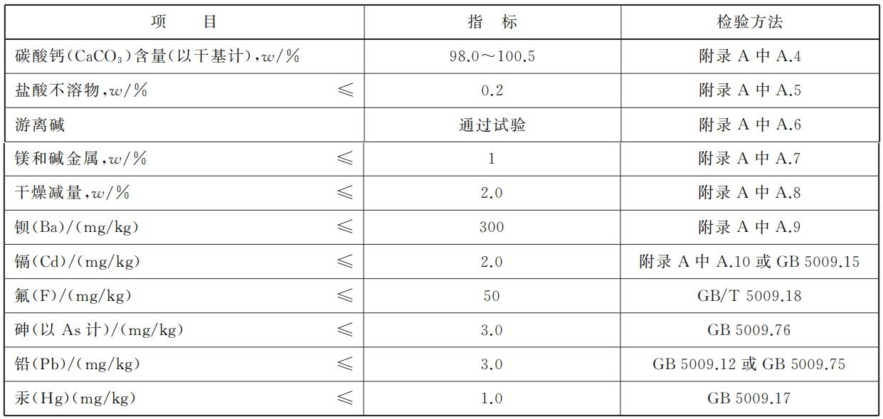 2、食品碳酸鈣標準