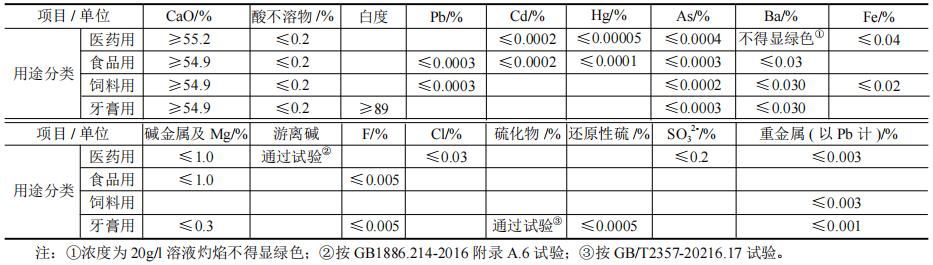 醫(yī)藥、食品、飼料、牙膏用碳酸鈣礦石質量要求
