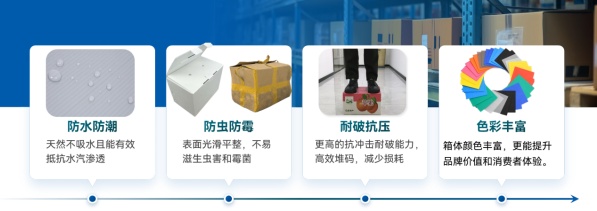 碳基箱相較于傳統(tǒng)的瓦楞紙箱,碳基中空板包裝箱具有優(yōu)異的防水、防蟲、防霉、抗壓耐破性能,且能夠重復(fù)使用,適合于各種復(fù)雜的物流運(yùn)輸和儲(chǔ)存條件。