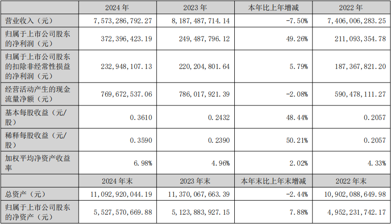 盡管2024年公司營業收入因部分產品價格波動及行業周期調整降至75.73億元(同比-7.50%),但通過聚焦高附加值產品與成本管控,凈利潤實現跨越式增長。其中,扣非凈利潤2.33億元(同比+5.79%),核心主業盈利能力穩步提升。值得關注的是,公司研發費用投入強度達8.3%,遠高于行業平均水平,累計獲得專利超千項,5個國家級研發平臺持續輸出技術成果,為長期競爭力構筑“護城河”。