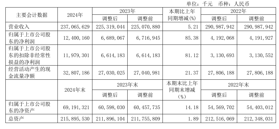 中國(guó)粉體網(wǎng)訊 3月26日,中國(guó)鋁業(yè)股份有限公司(以下簡(jiǎn)稱(chēng):中國(guó)鋁業(yè))發(fā)布2024年度報(bào)告。報(bào)告期間,中國(guó)鋁業(yè)實(shí)現(xiàn)營(yíng)業(yè)收入2370.66億元,同比增幅5.21%;利潤(rùn)總額223.22億元,創(chuàng)歷史最高盈利紀(jì)錄;歸屬于上市公司股東的凈利潤(rùn)124億元,同比增長(zhǎng)85.38%。