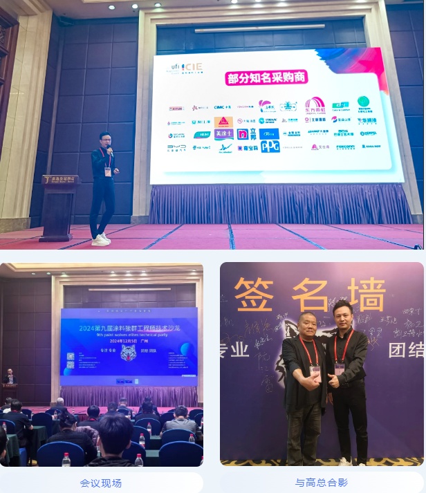 第九屆涂料狼群工程師技術沙龍在廣州嘉逸皇冠酒店三樓裕煌殿舉行,現場涂料行業大咖云集。ICIE組委會受邀參加,項目負責人張文鋒作了報告,詳細地介紹了展會的亮點、招展進度、同期活動籌備情況以及未來發展規劃等內容。會后與眾多參會代表一一溝通,氣氛濃烈。值得一提的是涂料狼群工程師技術沙龍將在2025年6月17-19日在ICIE展會期間再次在廣州舉辦。