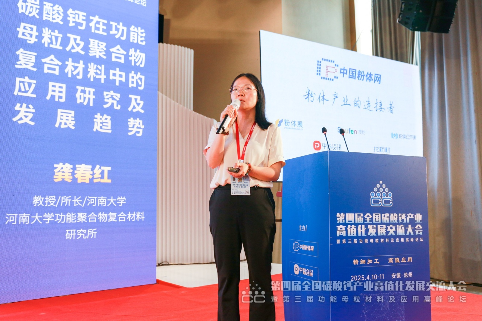 河南大學龔春紅教授作《碳酸鈣在功能母粒及聚合物復合材料中的應用研究及發展趨勢》報告