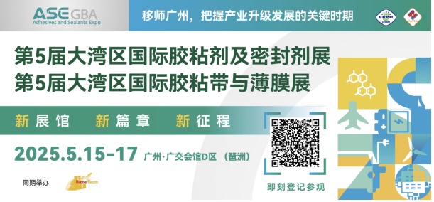 由中國膠粘劑和膠粘帶工業協會、中國國際貿易促進委員會化工行業分會聯合主辦的第五屆大灣區國際膠粘劑及密封劑展覽會(簡稱ASE GBA 2025)將于5月15日至17日在廣州廣交會展館D區隆重舉行。