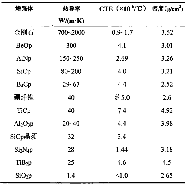 傳統(tǒng)的電子封裝材料主要有陶瓷、塑料、金屬及其合金。BeO、AlN等陶瓷材料具有和半導(dǎo)體元器件相匹配的低熱膨脹系數(shù),化學(xué)穩(wěn)定性好,熱導(dǎo)率較高,但其制備工藝復(fù)雜,加工較困難,尤其是BeO有劇毒且成本高。塑料封裝材料具有成本低、質(zhì)量輕、絕緣性好等優(yōu)點(diǎn),但塑料封裝材料熱導(dǎo)率差,耐高溫性差,電性能與半導(dǎo)體熱膨脹系數(shù)匹配一般。單一的Cu、Ag、Al等金屬具有較高的熱導(dǎo)率,但熱膨脹率過高。Cu-W,Cu-Mo等合金材料熱導(dǎo)率又較低。因此,為保障電子元器件的正常使用以及延長使用壽命,迫切需要研制熱導(dǎo)率高且熱膨脹率適宜的新型封裝材料。