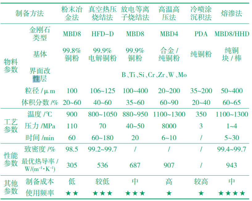 單粒徑金剛石/銅復(fù)合材料不同制備方法工藝與性能對(duì)比