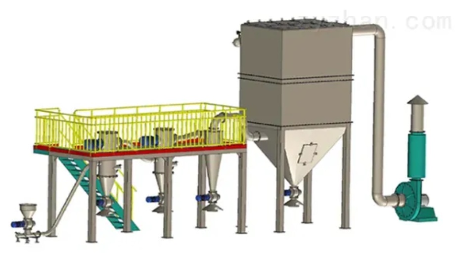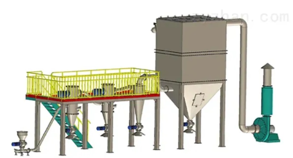 防爆粉碎生產(chǎn)線為易燃、易爆物料的粉體生產(chǎn)線量身訂制。易燃、易爆物料在粉體生產(chǎn)粉碎過(guò)程中,可燃粉塵達(dá)到一定濃度、氧含量達(dá)到一定范圍的同時(shí),因異物顆粒碰撞產(chǎn)生火花可致粉料爆燃,在設(shè)計(jì)產(chǎn)線中設(shè)置多個(gè)融爆口,在粉料達(dá)到一定條件爆燃時(shí),瞬間增壓會(huì)沖破對(duì)應(yīng)位置的融爆裝置,將爆燃增壓氣體引出至室外安全位置。6.多轉(zhuǎn)子氣流分級(jí)系統(tǒng)