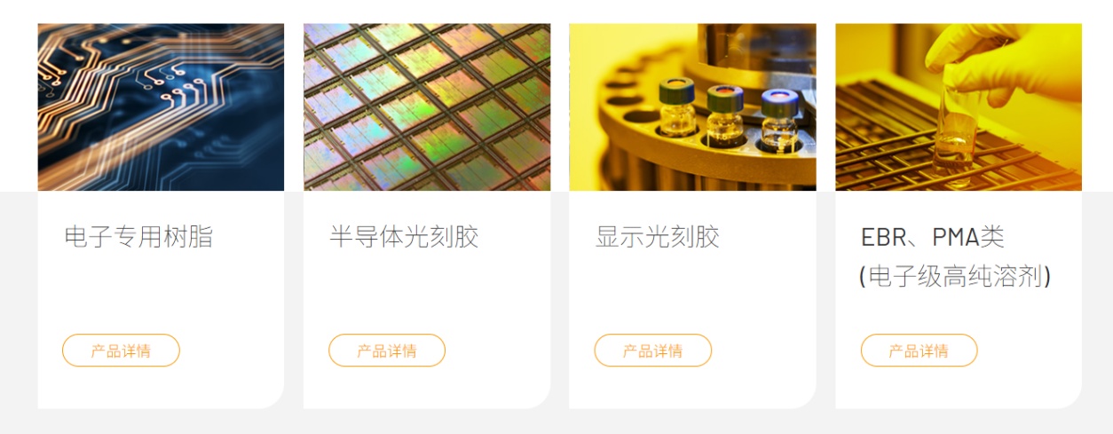 公司相關年產1.1萬噸半導體、平板顯示用光刻膠及2萬噸相關配套試劑項目,項目工程階段已竣工,目前已部分進入投產階段,產品涵蓋半導體光刻膠、面板正膠、面板有機絕緣膜、EBR等高端光刻膠及其配套產品。