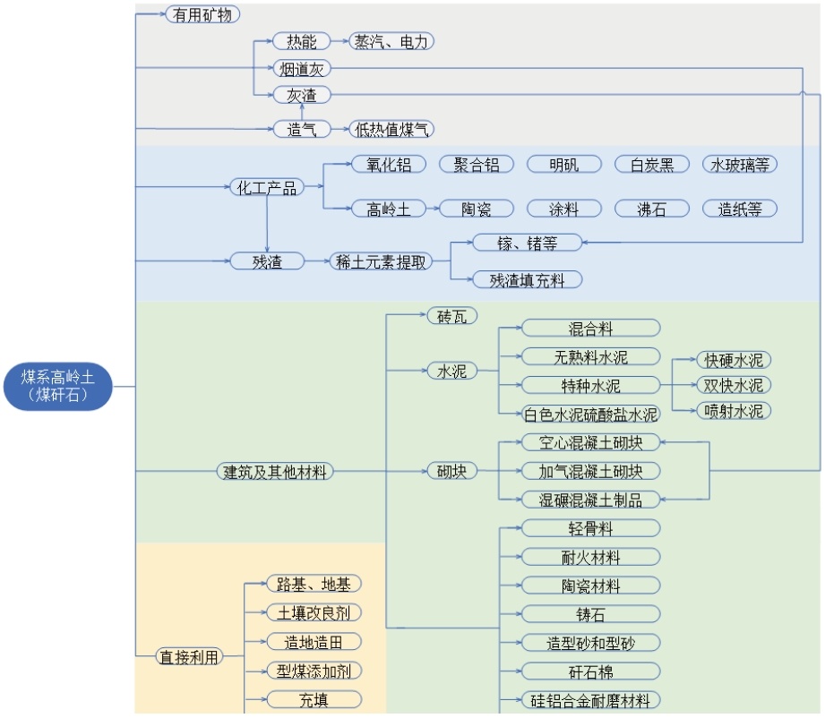通過磨礦、磁選、漂白、壓濾、干燥、煅燒等工藝流程可實現煤系高嶺土的精選提純與應用。